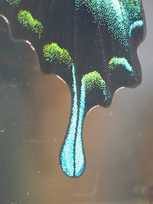 What exactly is biomimetics? It is defined by Websters as "the study and development of synthetic systems that mimic the formation, function, or structure of biologically produced substances and materials and biological mechanisms and processes.' So it is the study of structure and function of biological systems, such as butterfly wings, to use in the design of structure, function, and materials of machines or devices. We touched in this in the post about pearls where we learned that scienticst studying the structure and compostion of pearls are using what they've learnedabout pearl nacre in applications for dental implants, artificial bones, and computer components. Anyway- it's biomimicry.
