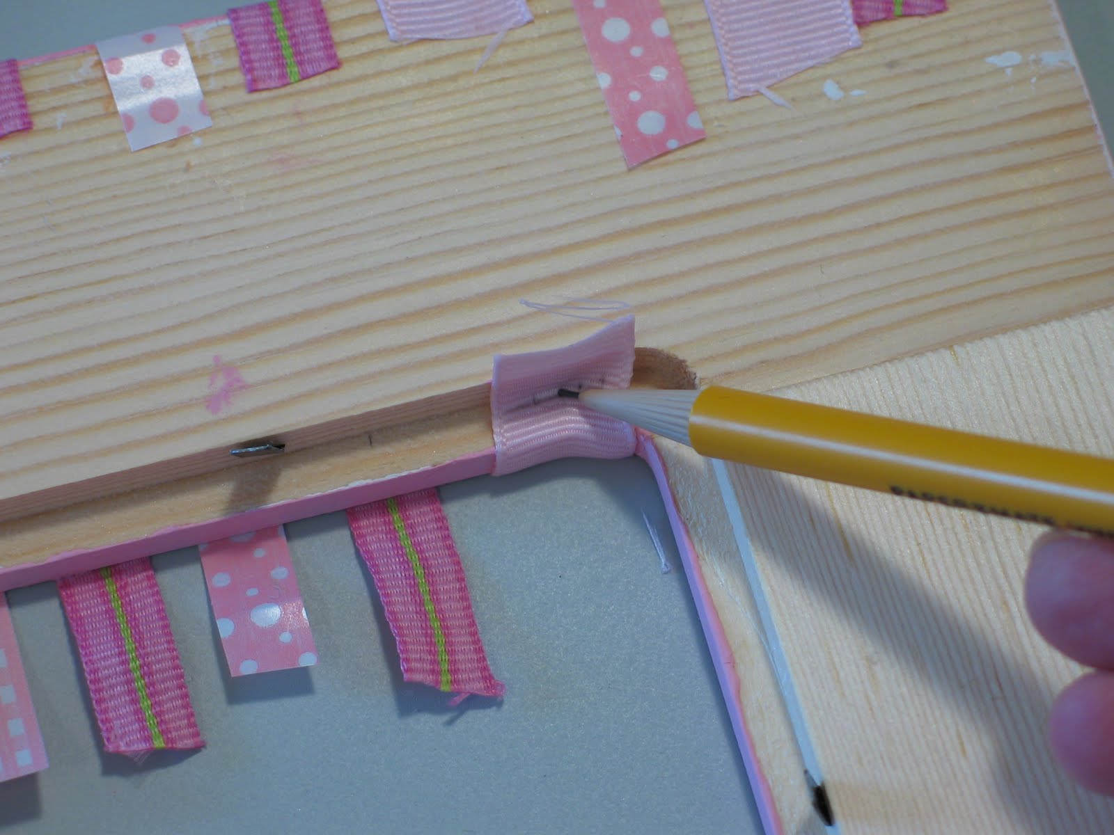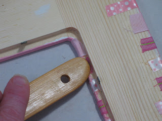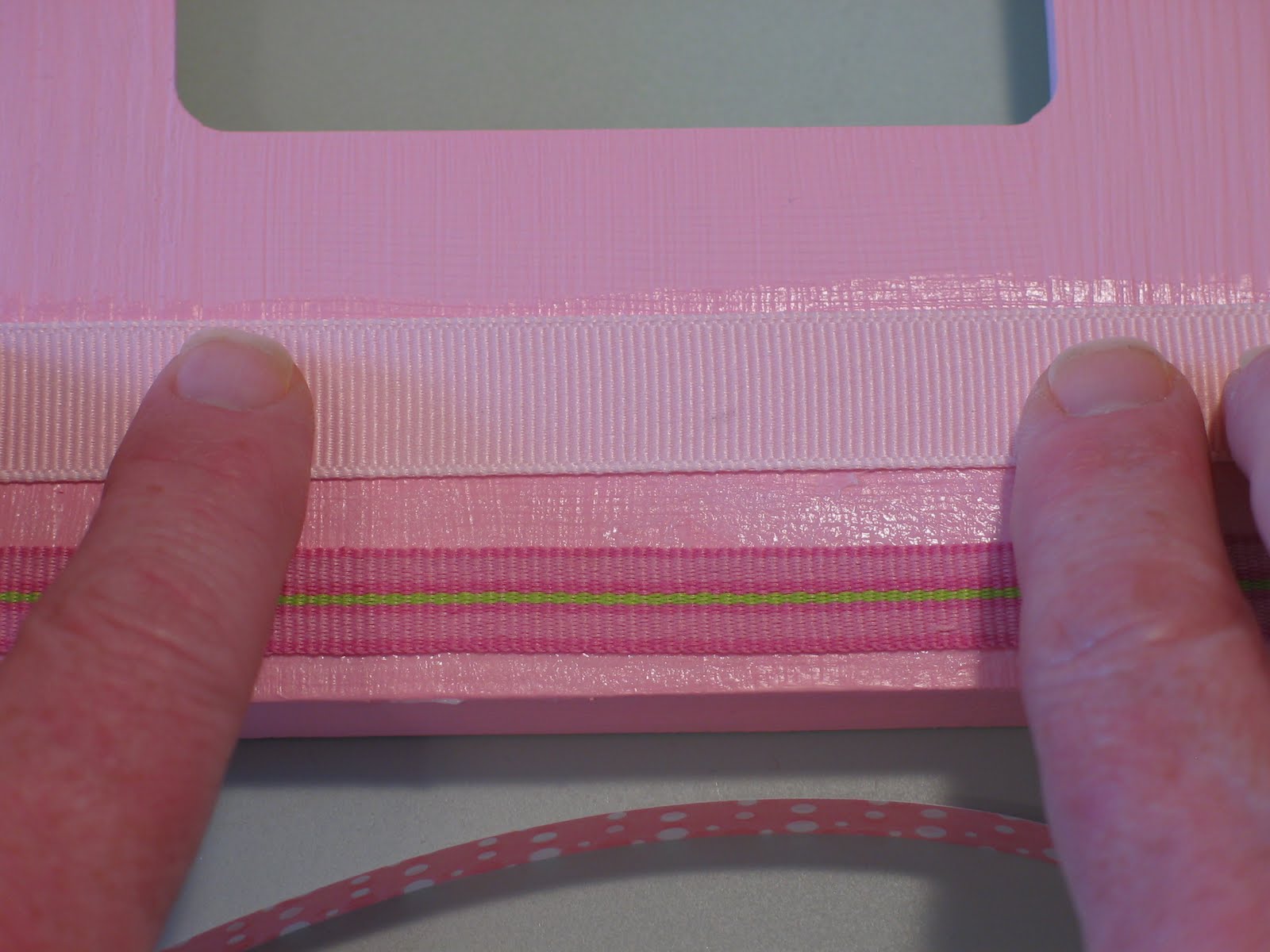 I wanted the ribbon on the inside opening of the frame to wrap around the edge.