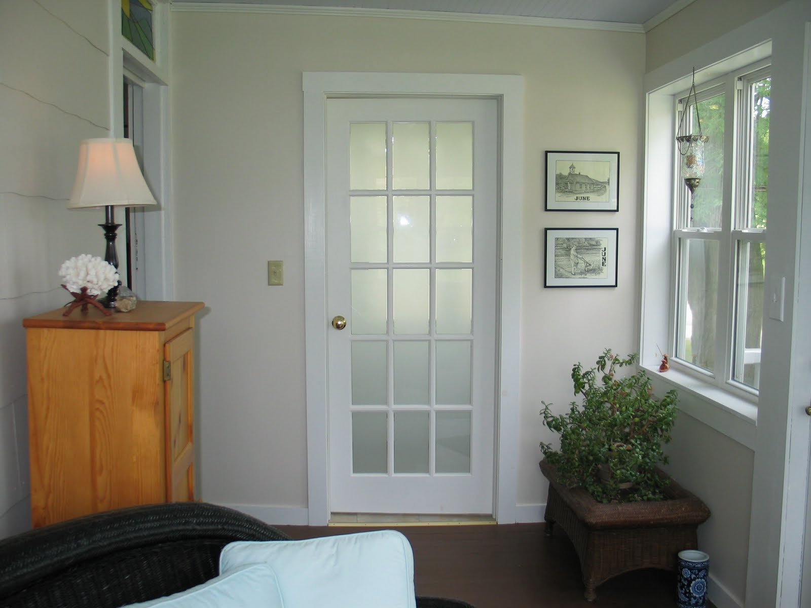 The previous owners had added a small bathroom on the porch. The funny part is that when they went to put in the little shower stall, they just pulled the blinds down in the windows and put in the pre-fab shower unit. From the outside it looked like a regular window with closed blinds but on the inside there was no greenboard or anything. I don't mean to be unkind, but some of the work done in the house over the years was probably not up to code.