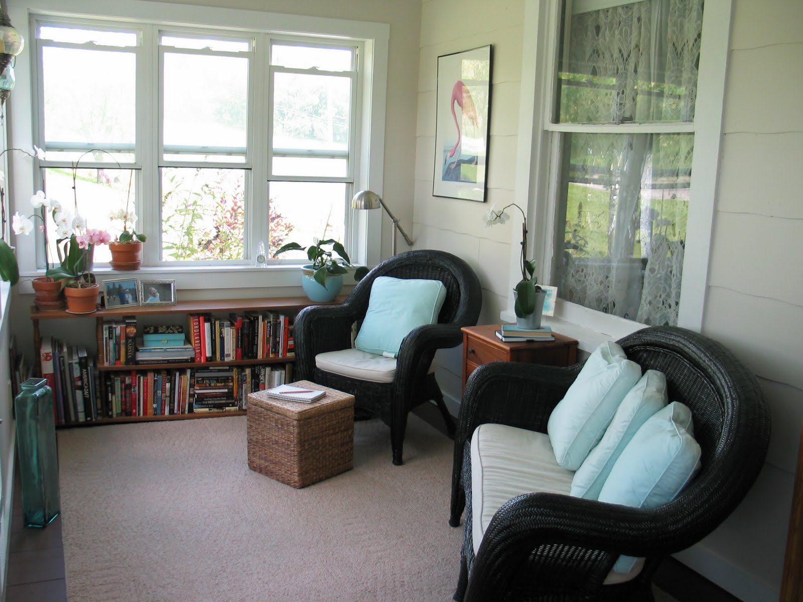 So now I have my private reading spot. The light and my benign neglect make it the perfect place for orchids and the Blue Knight Butterfly bush right out the window makes it a great place to spy on butterflies.