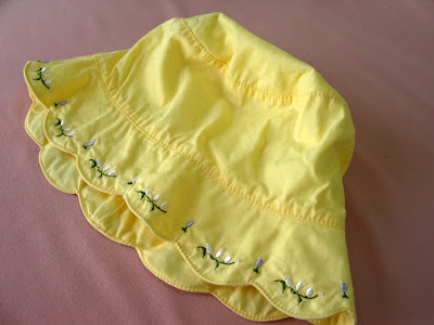 This precious sun hat with Lilly-of-the-Valley embroidered on the brim.