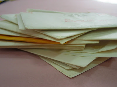Next came The Bundle, the stack of letters from my first love. No, there's no ribbon embracing them and no, I didn't read them. This fine man has since passed away and it's just too bitter-sweet. I love my husband without reservation but you know how it is- your first love has that special place.