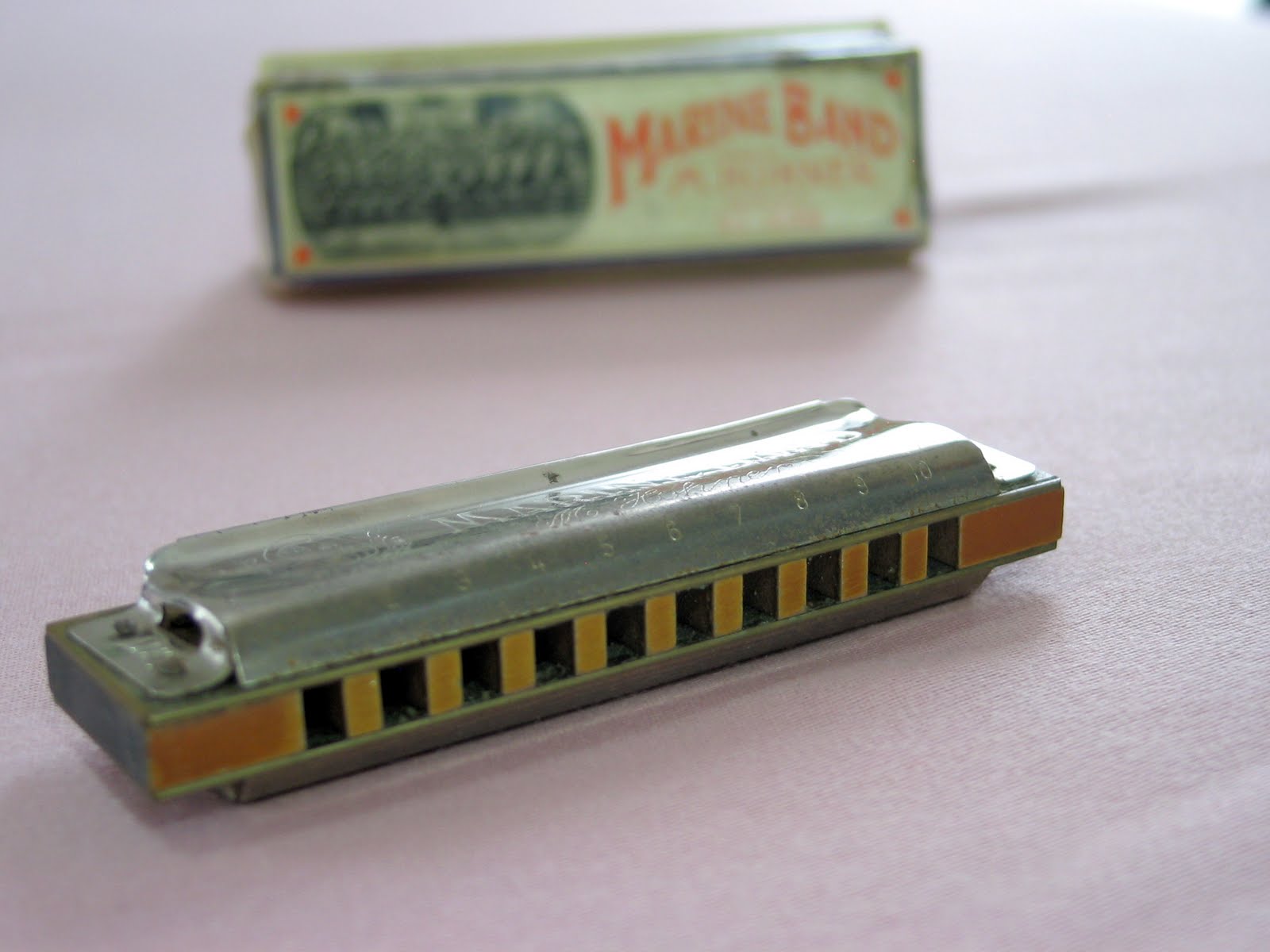 Next up- a Marine Band harmonica. I think it started out as my brother's but in a big family things float around. And yes, just for the record, I did play it and yes, I can still rip it up. Well, Oh Susanna, at least.