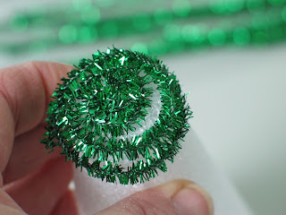 Be careful about leaving too much space between each stem or the cone will show through. If you're using white pipe cleaner that's not such an issue. I try to coil the stems so that the ends of the little bristles overlap just a tiny bit. That seems to be a fairly economical way of doing it but of course you can wrap the pipe cleaner more densely if you prefer. Just remember that you will need more than 17 stems of pipe cleaner if you do.