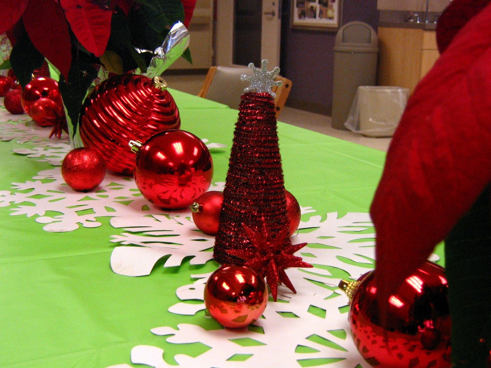 For last year's patient Christmas Dinner table, I was working with a lime green and red theme but green Christmas trees are so expected so I made mine red.