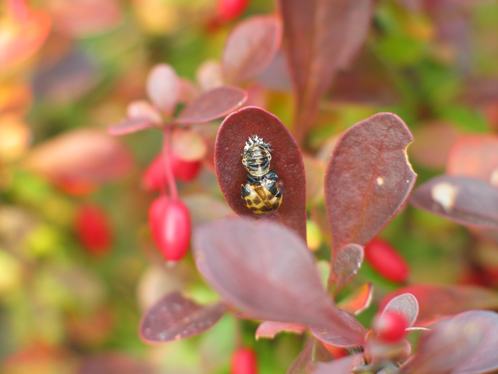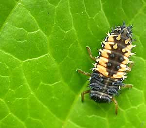 I know! Freaky, right? The ladybug larvae are just as varied as the adult. Since our lady is a beetle it undergoes complete metamorphosis, which means that the larval stage looks nothing like the adult.
