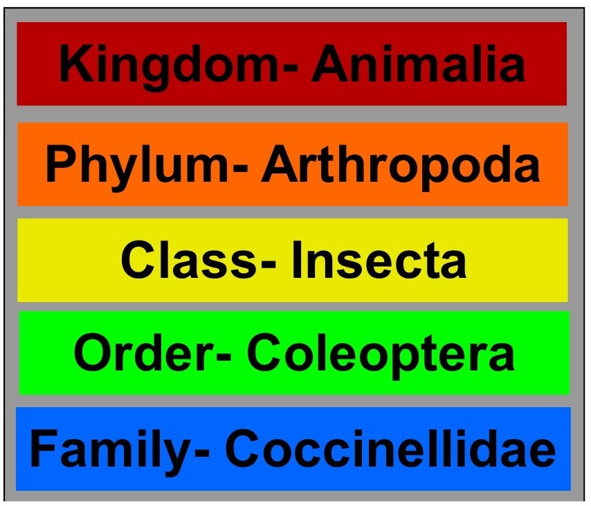 Bugs fall within the Order Hemiptera (half wings), beetles fall within the Order Coleoptera (sheathed wings). And all ladybugs fall within the Coccinellidae family.