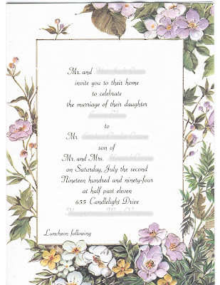 My cousin's daughter, who was at our wedding as a young child way back when, is getting married today.