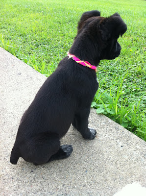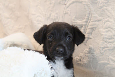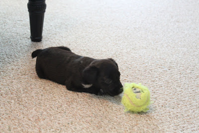 Even cleaned up the day we brought her home, she was still pretty pitiful. It's been a long time since I've worried about a puppy as much as I worried about her those first few days. Five weeks and she could barely stand.