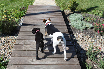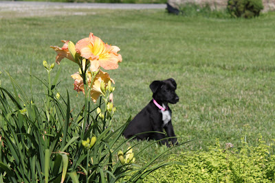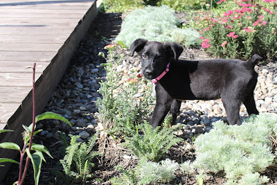 We recently kenneled the dogs with the vet while we took a four day weekend. When we picked them up, dear Dr. S came out and shook his head with a little laugh. "That is the feistiest puppy I've ever seen in all my years as a vet" he said. That made me proud of my girl. Oh and is she ever feisty- always ready for a tussle, not afraid to jump in, full of opinions and fearless energy. Do first, ask questions later. Questions like,