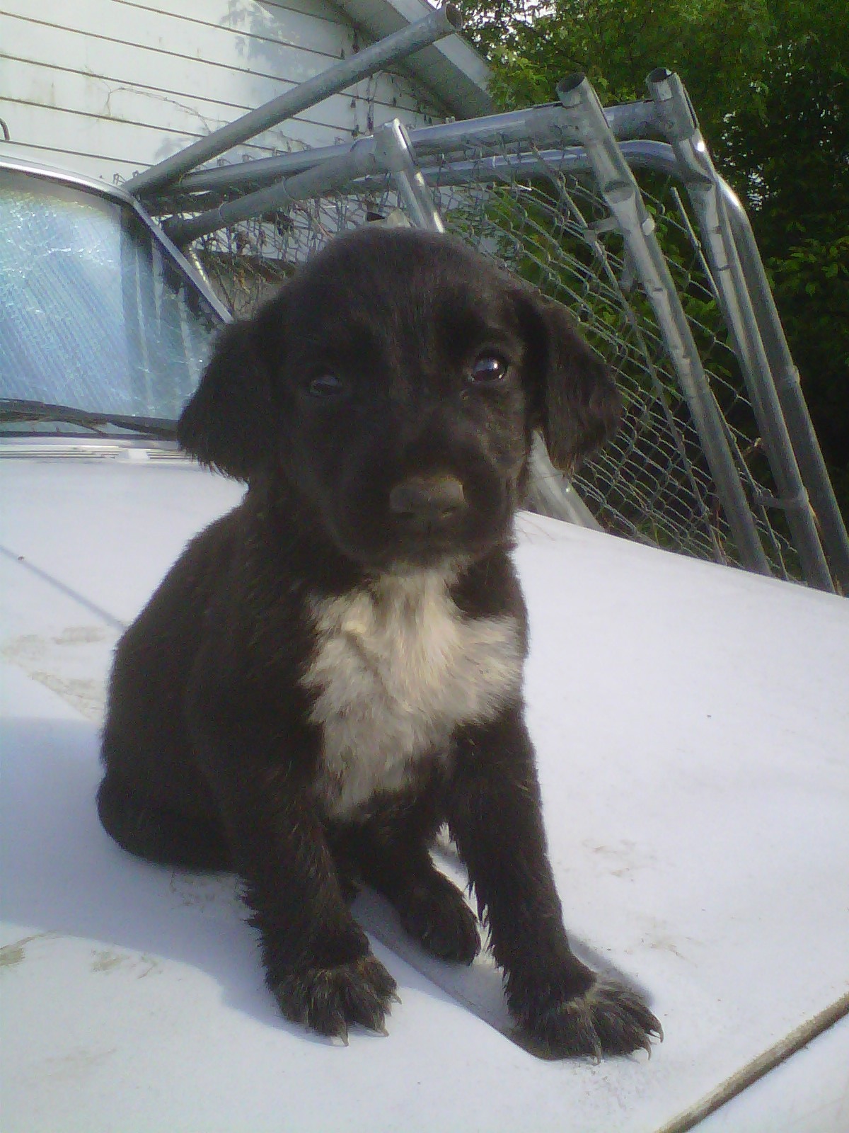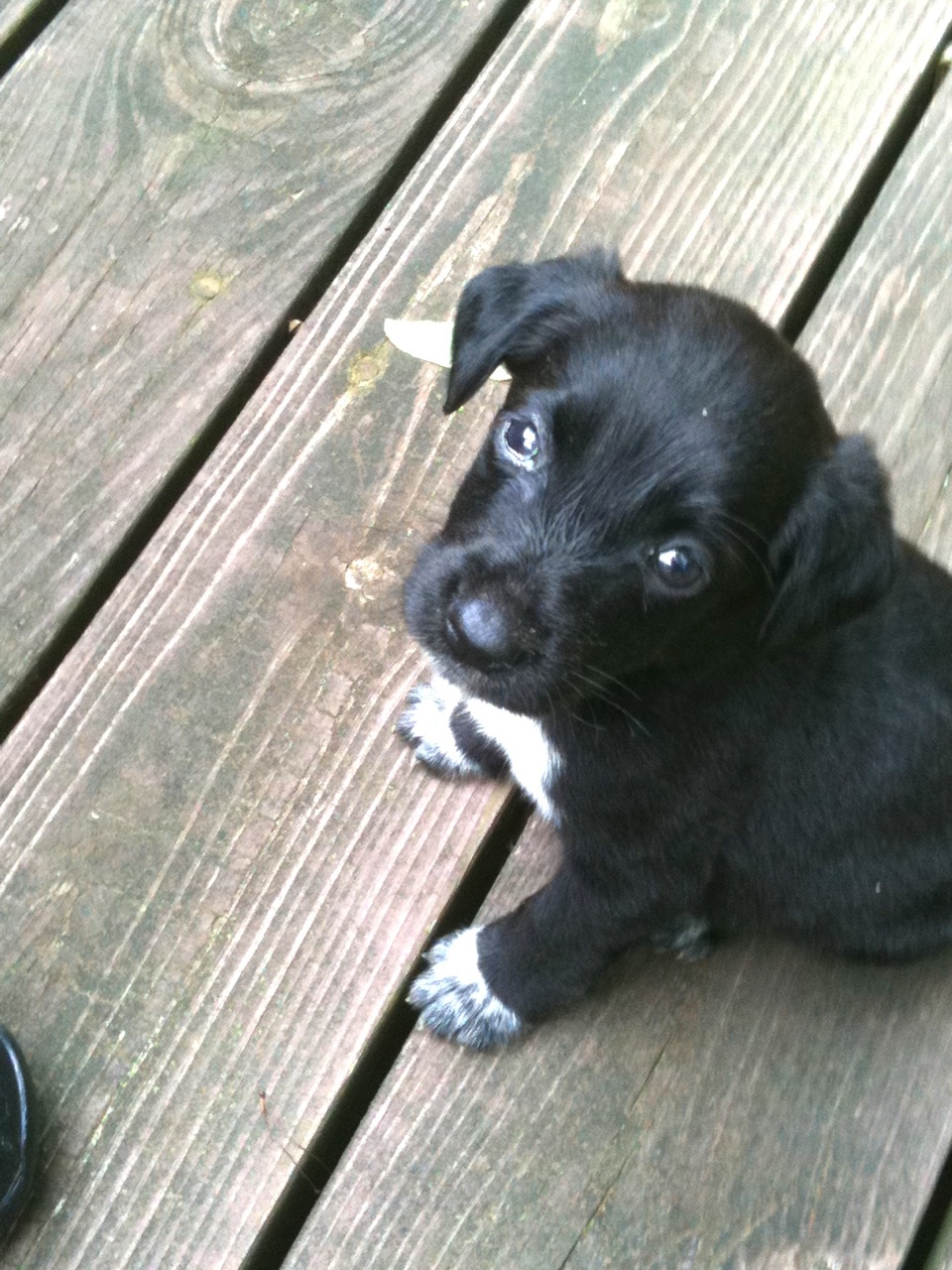 Do you remember this pitiful, dirty, wormy little German Shep-Black Lab mix of a runt? This is the photo her owner texted me when I called about the free puppies. Can you see the sadness in her eyes?