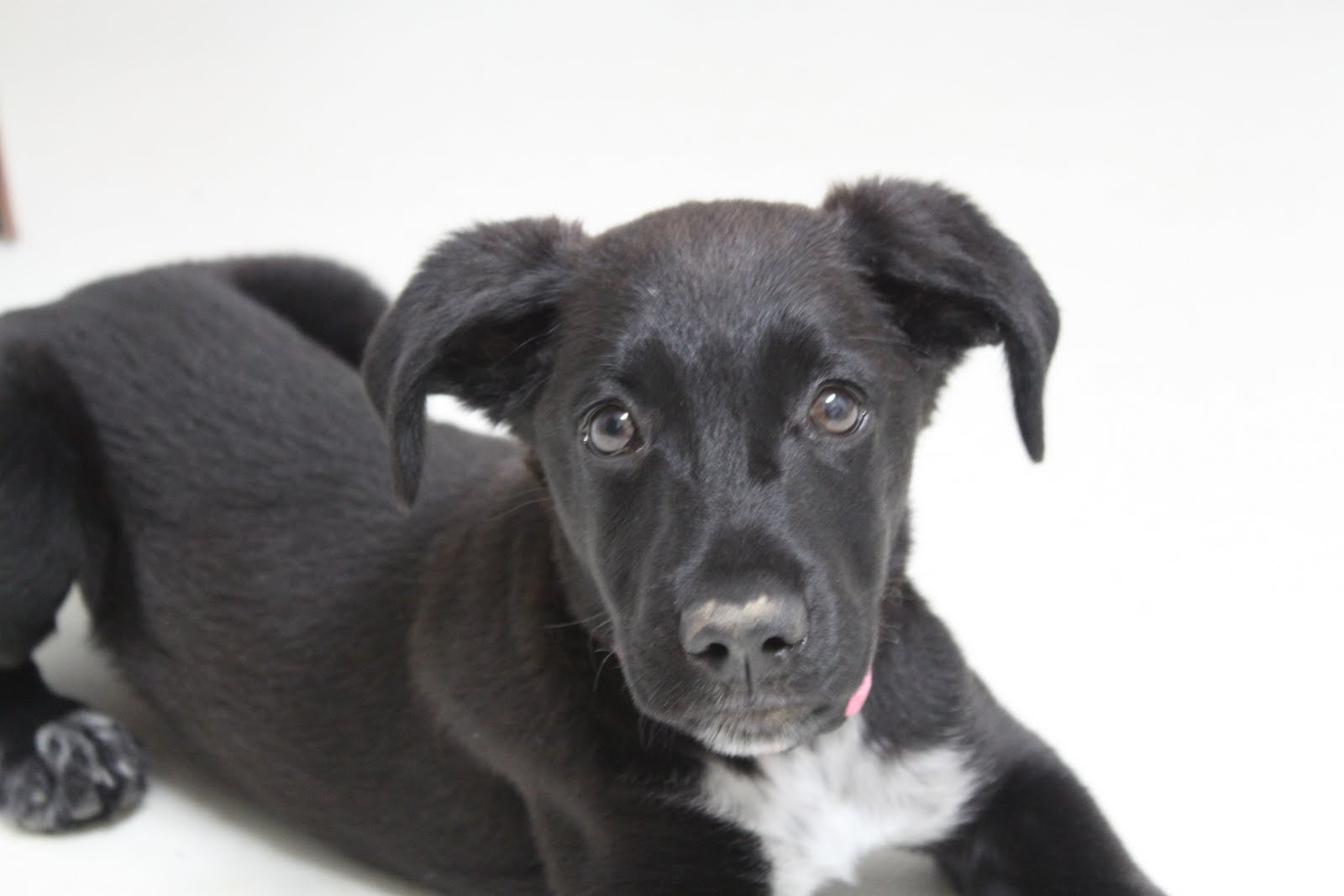As I looked at pictures of "GermShepadors", it struck me how so many black lab mixes have the white speckly chest and feet. Turns out Black Labs came from a now extinct breed called the St John's Water Dog, which originated on the island of Newfoundland. The characteristic white chest, feet, muzzle, and chin markings, called tuxedo markings, still manifests in lab mixes and occasionally as a white chest medallion in Black Labs.